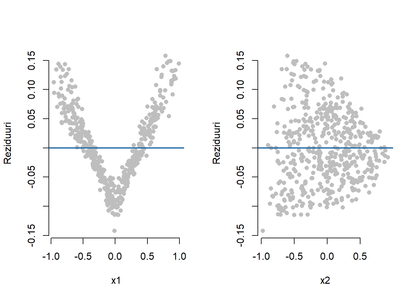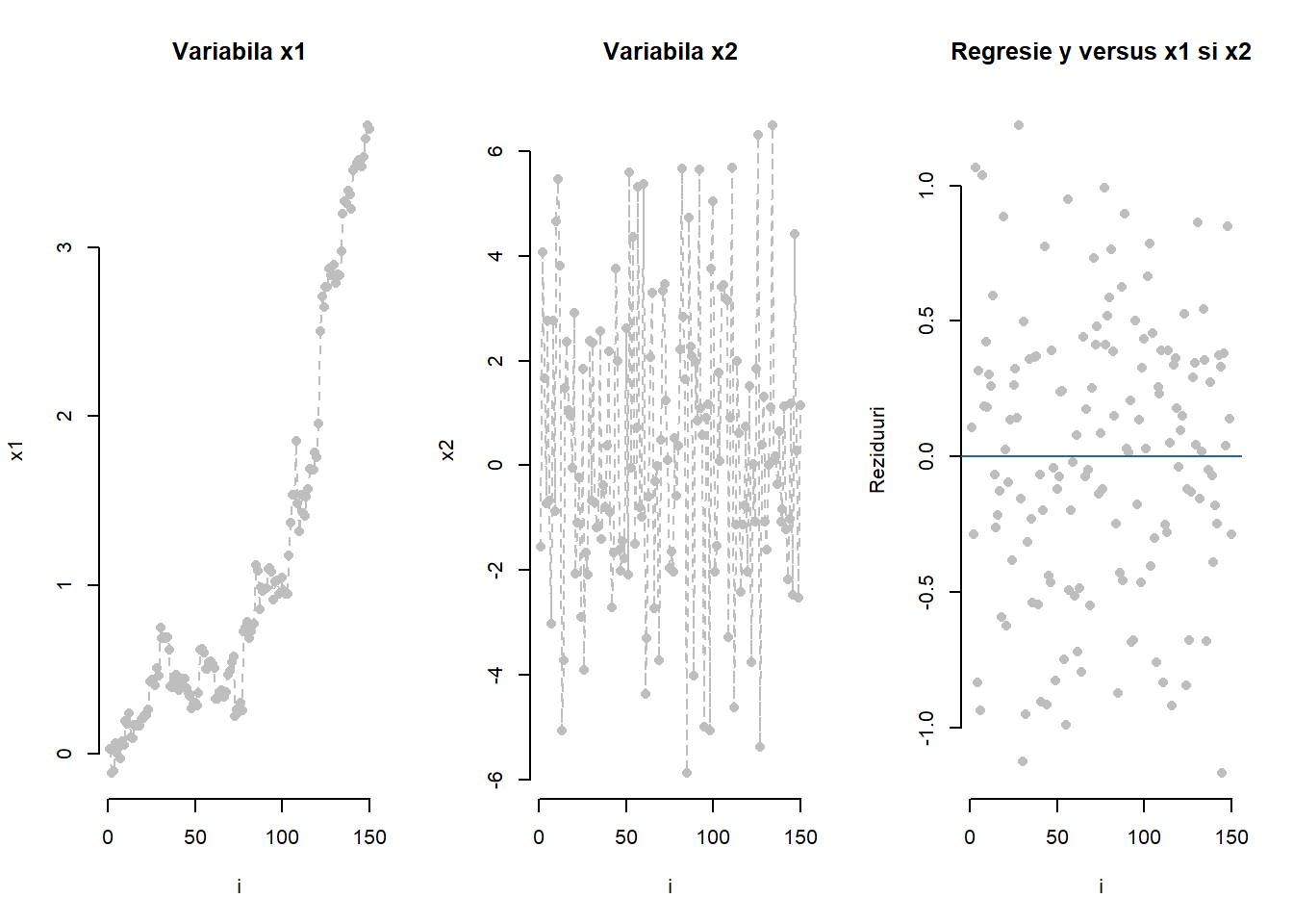 # Efectul temporal al covariabilei $x_1$ și respectiv caracterul netemporal al covariabilei $x_2$ asupra valorilor reziduale pentru modelul simulat