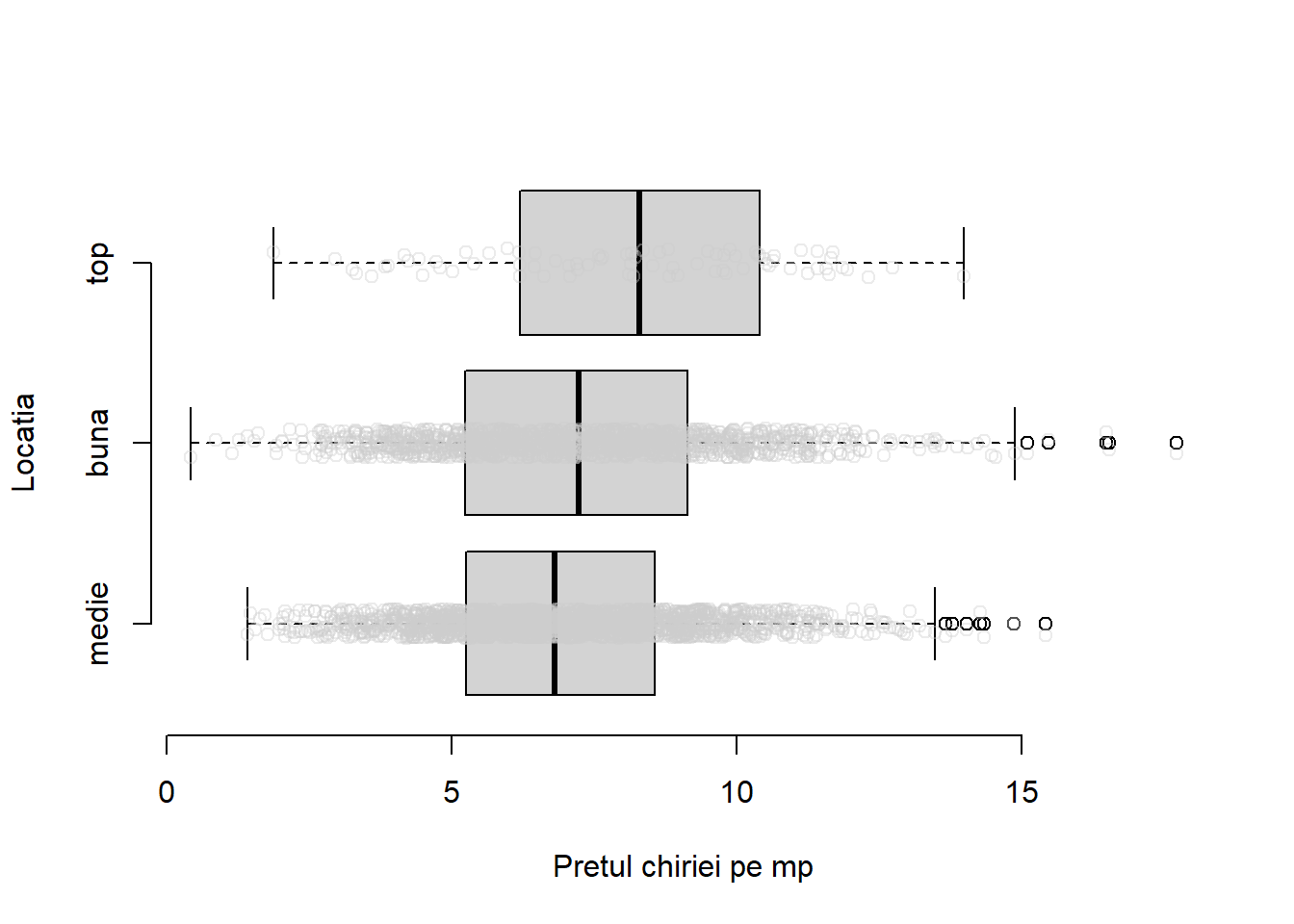 # Efectul suprafeței asupra prețului chiriei în raport cu locația