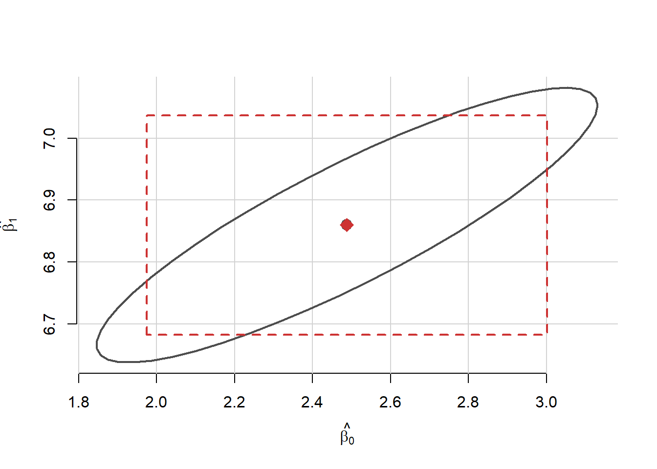 Exemplul 3.1 (Aplicație pentru regresia liniară simplă) Vom exemplifica rezultatul celui de-al doilea subpunct al Propoziția 3.4 pentru cazul particular în care \(p+1=q=2\) iar matricea \(R=I_2\). Avem că