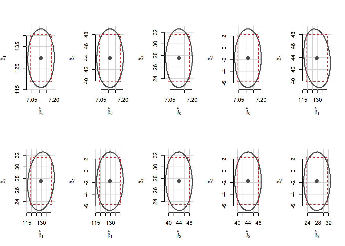 Putem observa că rezultatul anterior nu este suficient pentru a determina o regiune de încredere pentru coeficienții modelului de regresie \(\symbf \beta\) deoarece varianța \(\sigma^2\) a fost presupusă cunoscută, fenomen care nu este aplicabil în caz general. Rezultatul următor vine să acopere acest deficit.